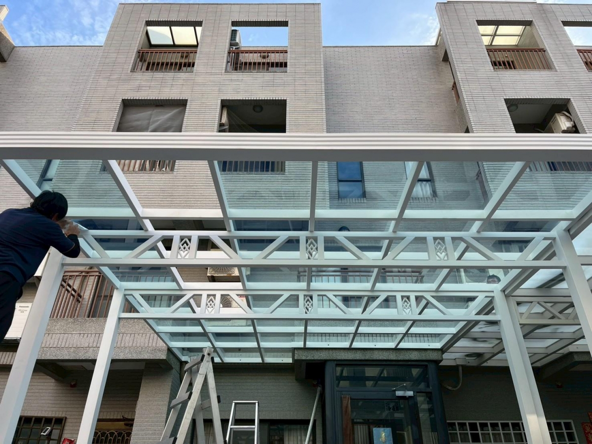 玻璃雨棚骨架安裝實例~鹿港雨棚搭建